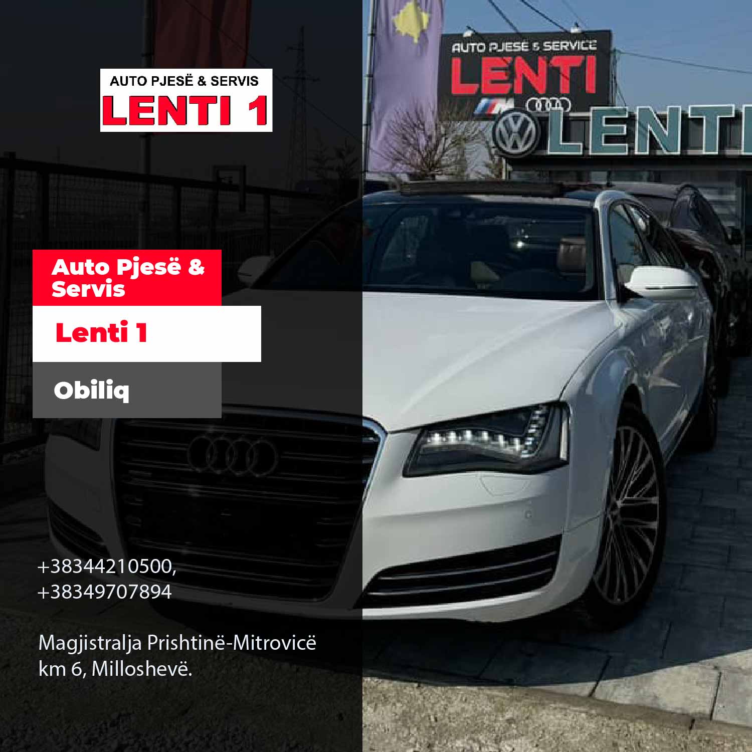 Auto pjesë Lenti 1 ofronë servisim të veturave, pjesë të reja dhe të përdoruara për vetura të ndryshme si: BMW, VW, Audi etj.