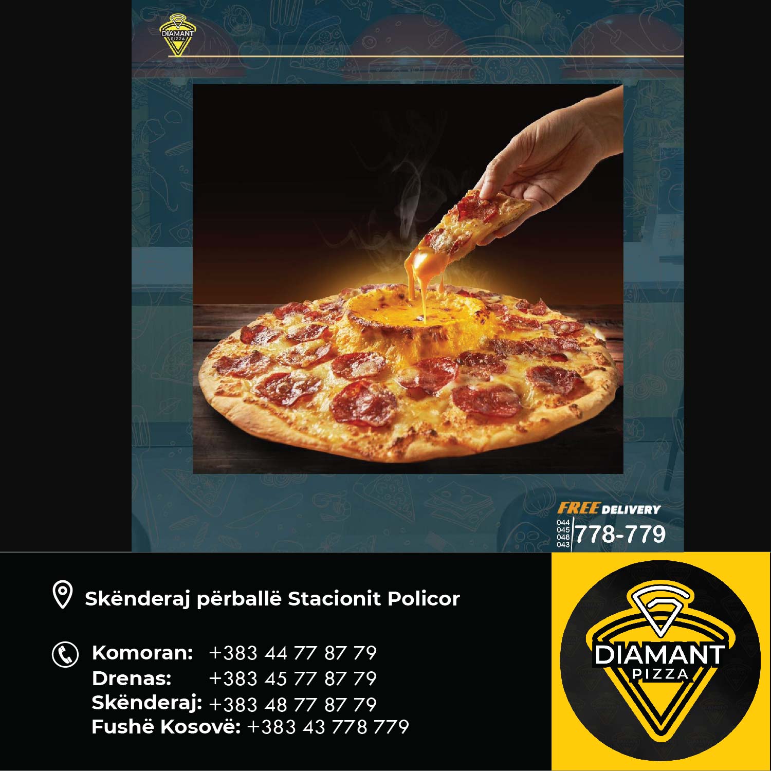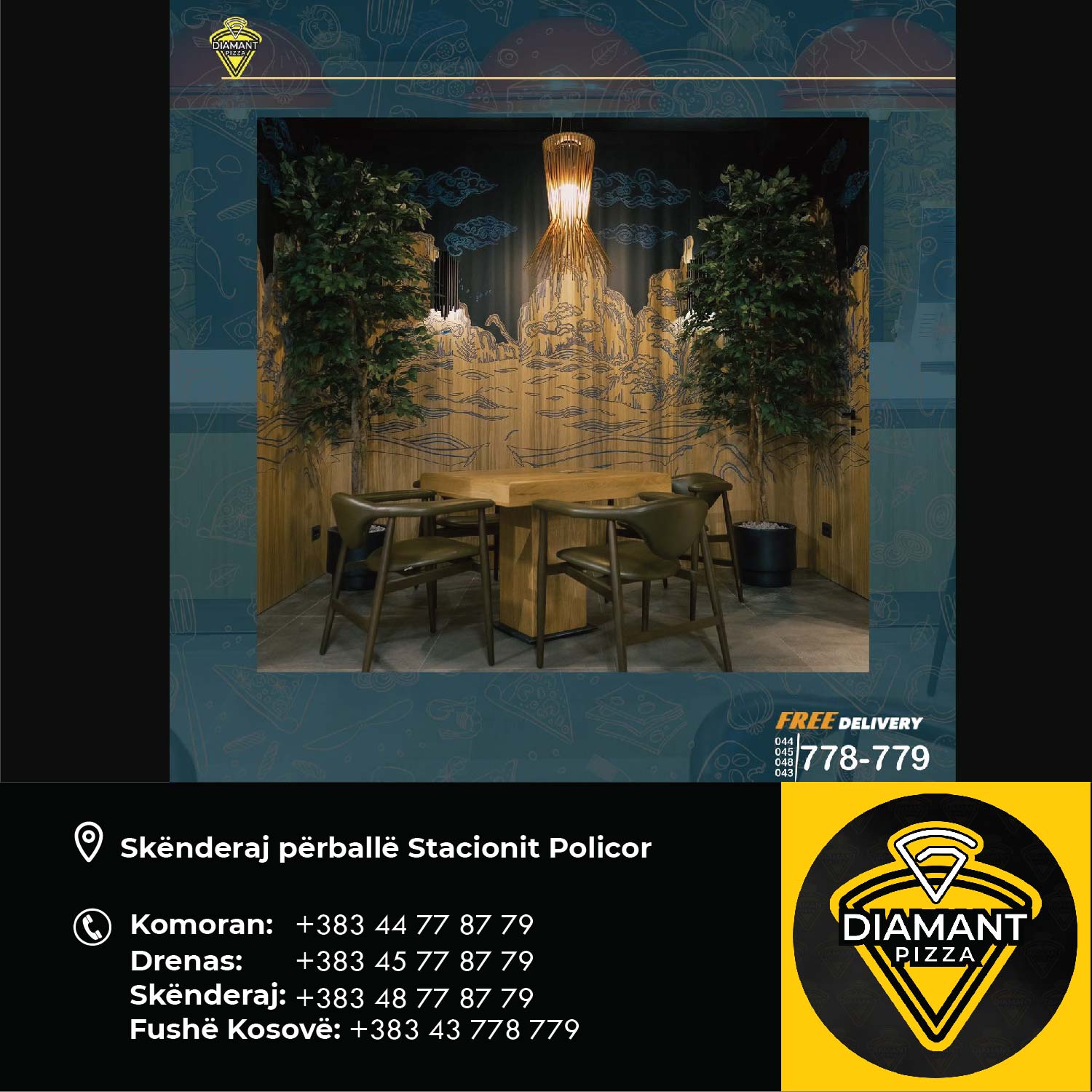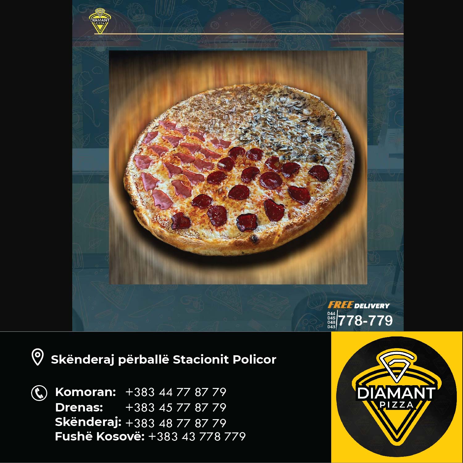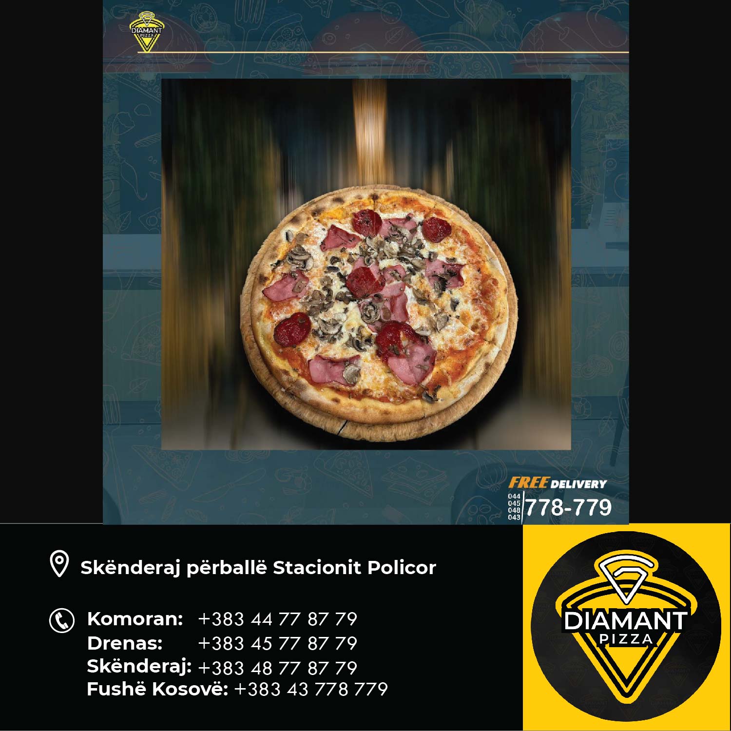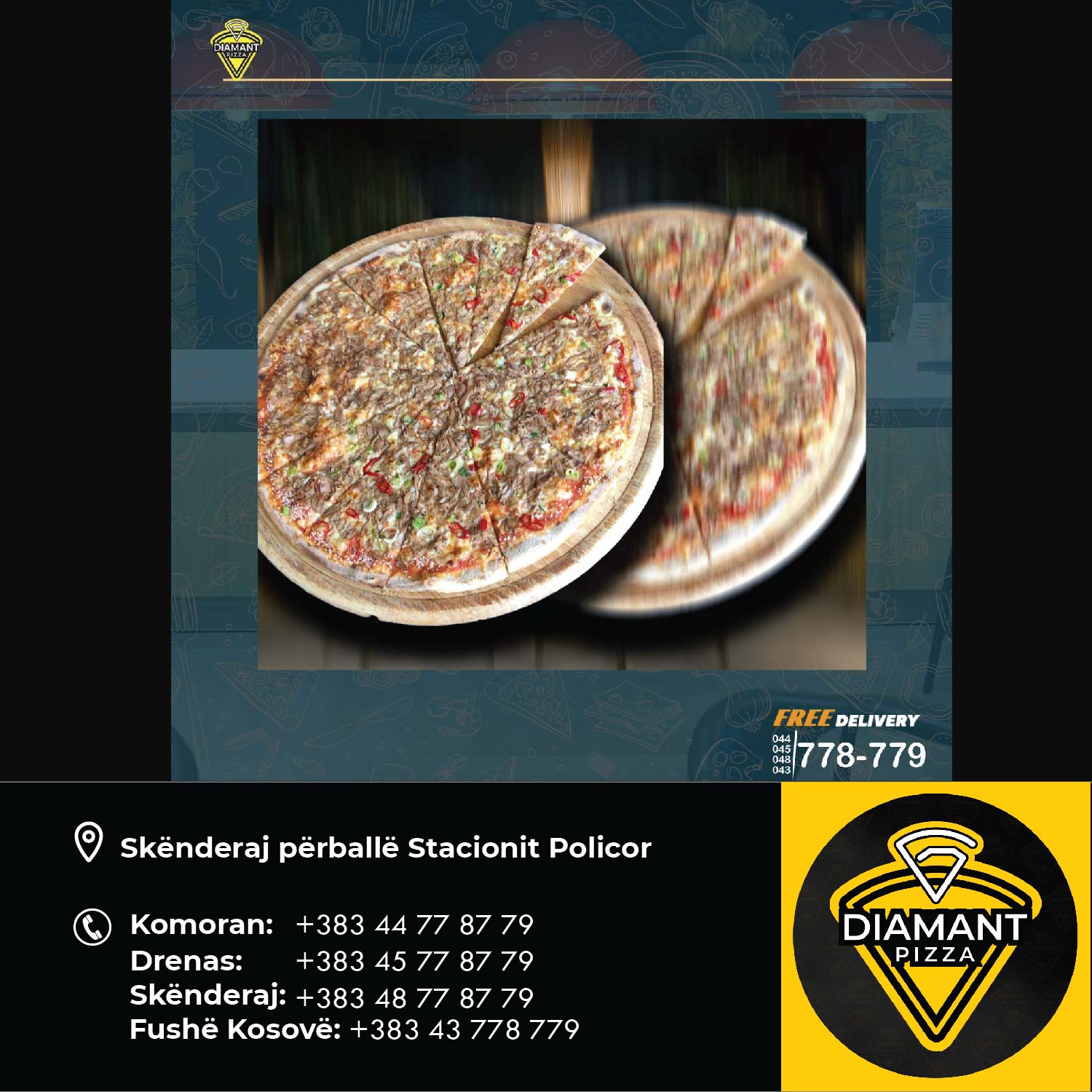 Restaurant, Pizzeria Dijamant ofronë ushqime nga kuzhina tradicionale Shqiptare dhe ajo Europiane,