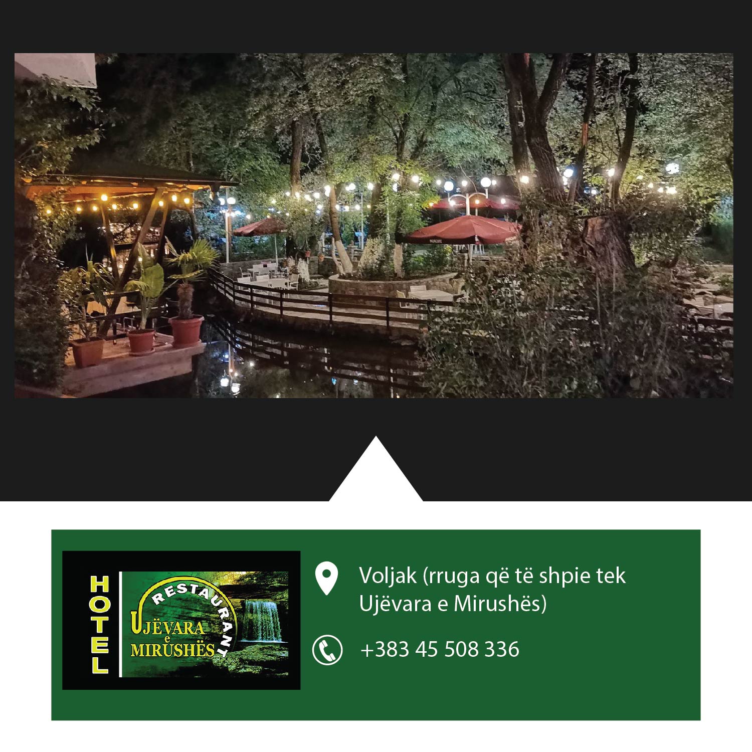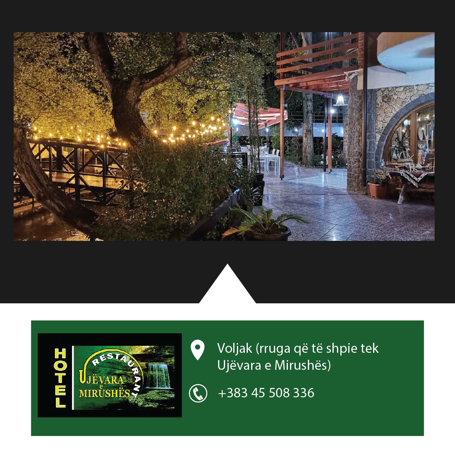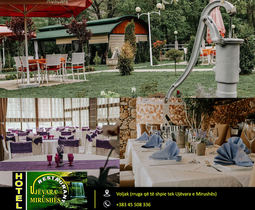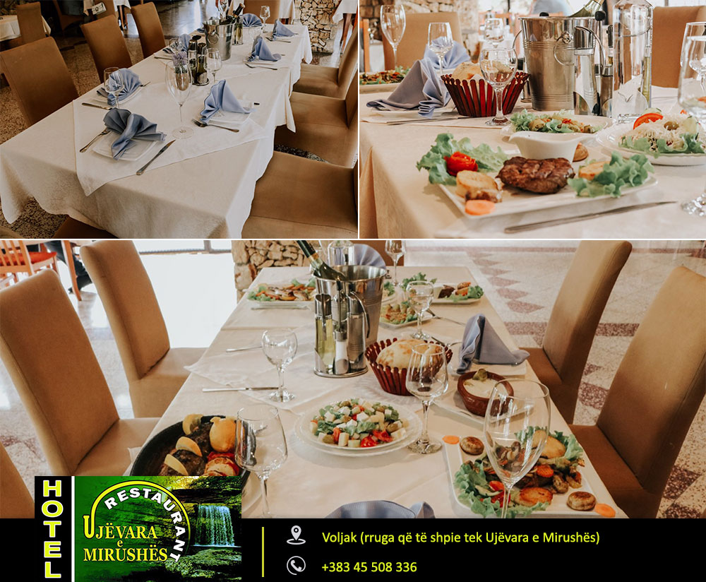 Restaurant & Hotel Ujëvara Mirushës Ushqime fantastike specialitet peshku, meny tradiconale shërbim cilësor dhe i shpejt në hotel dhe restaurant në një ambient të mrekullueshëm buzë lumit Mirusha!!!