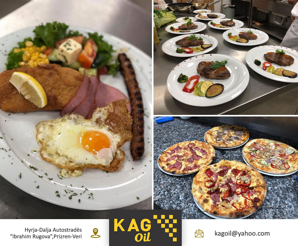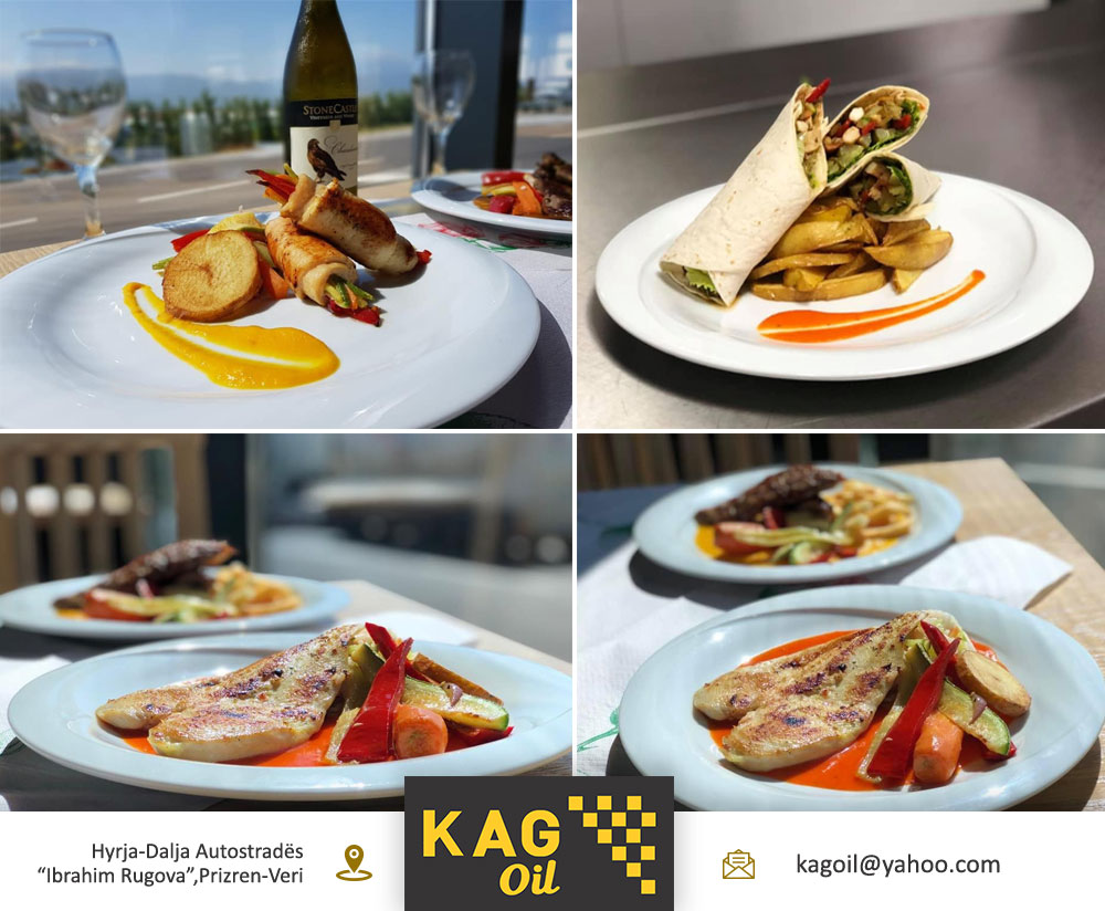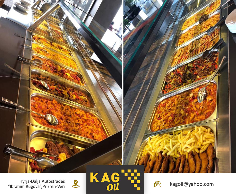 Përveq shërbimit me derivate cilësore për veturën tuaj tek KAG Oil, ju keni mundësinë të shijoni edhe një vakt me ushqim cilësor të përgaditur nga kuzhinier me eksperiencë pune mbi 20 vjeçare. Jemi hapur 24 ore! Ju mirëpresim!