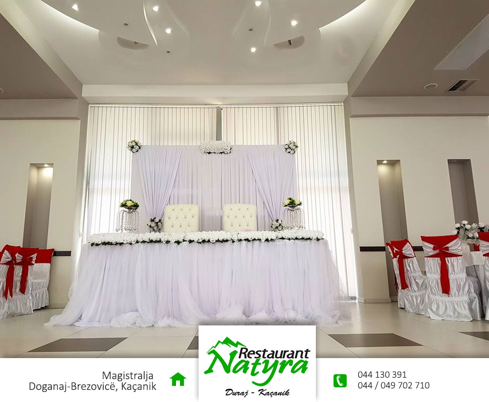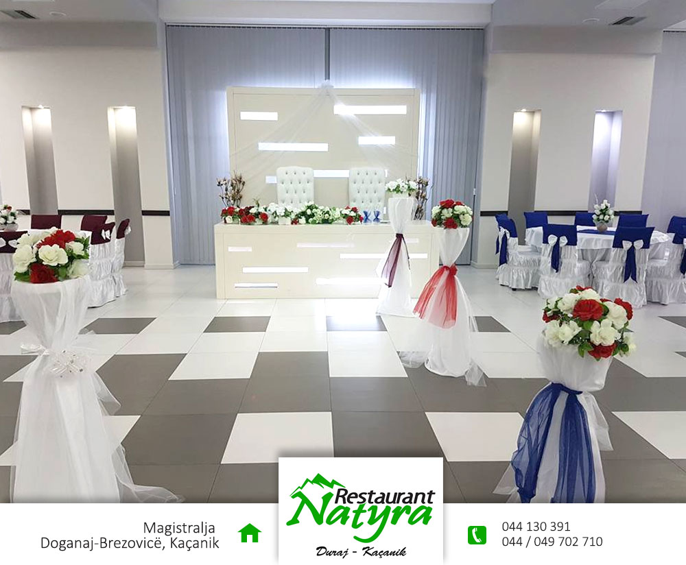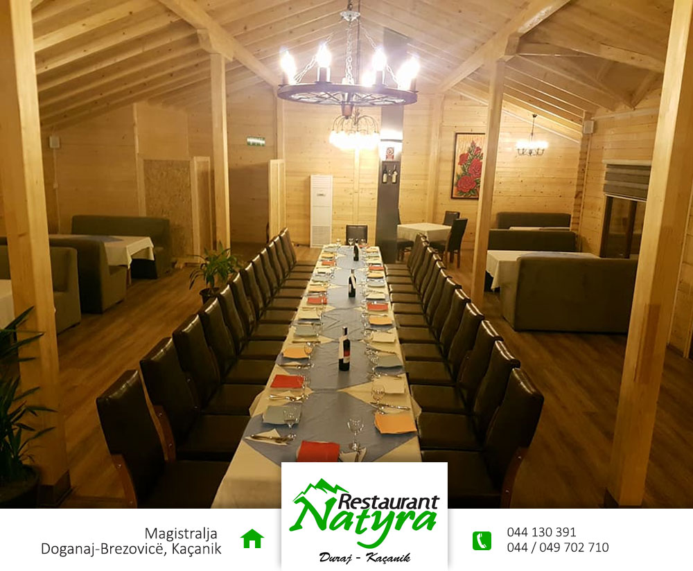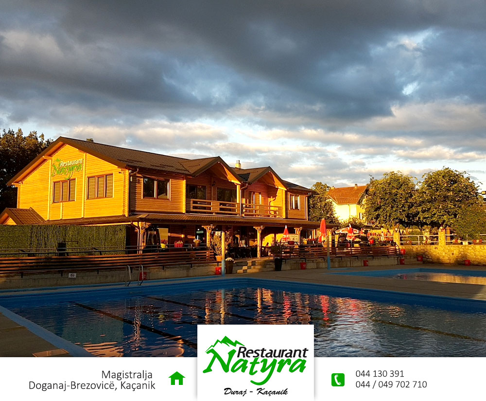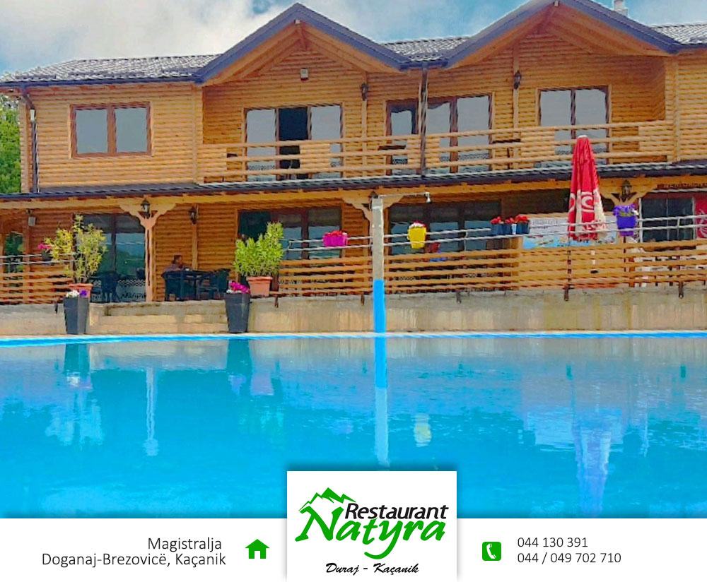 Restaurant Natyra Ambient i këndshëm dhe relaksues për të gjitha moshat, ku mund të shijoni ushqime të shijshme, të freskoheni në pishinë apo edhe të kaloni çaste të paharrueshme, me rastin e dasmave tuaja si dhe ahengjeve të ndryshme familjare...