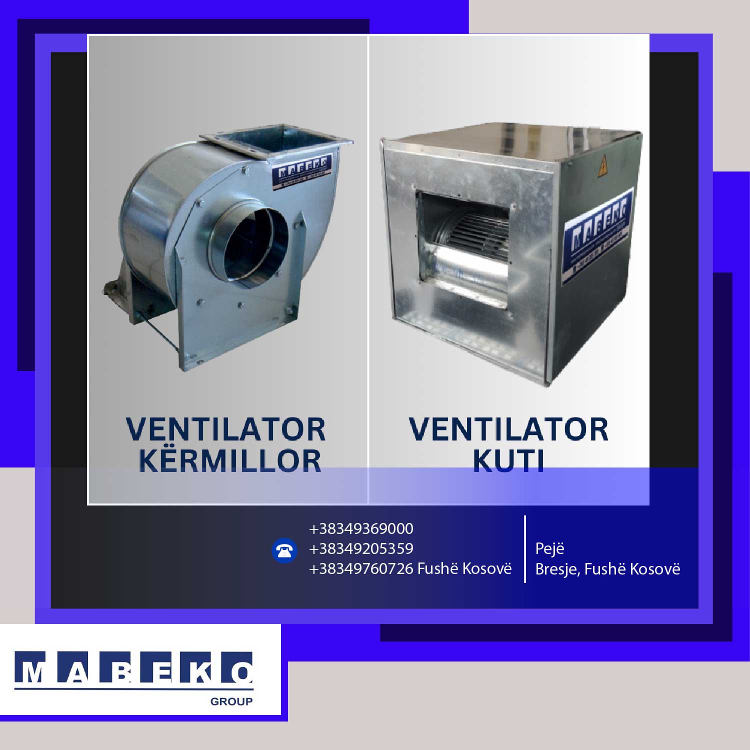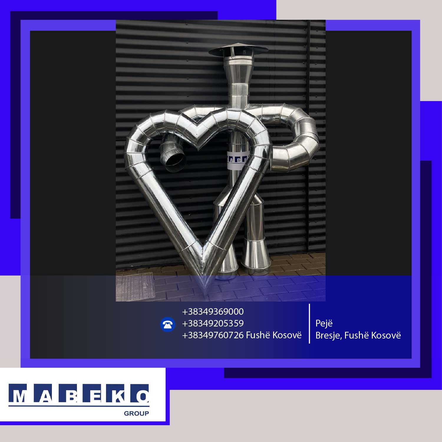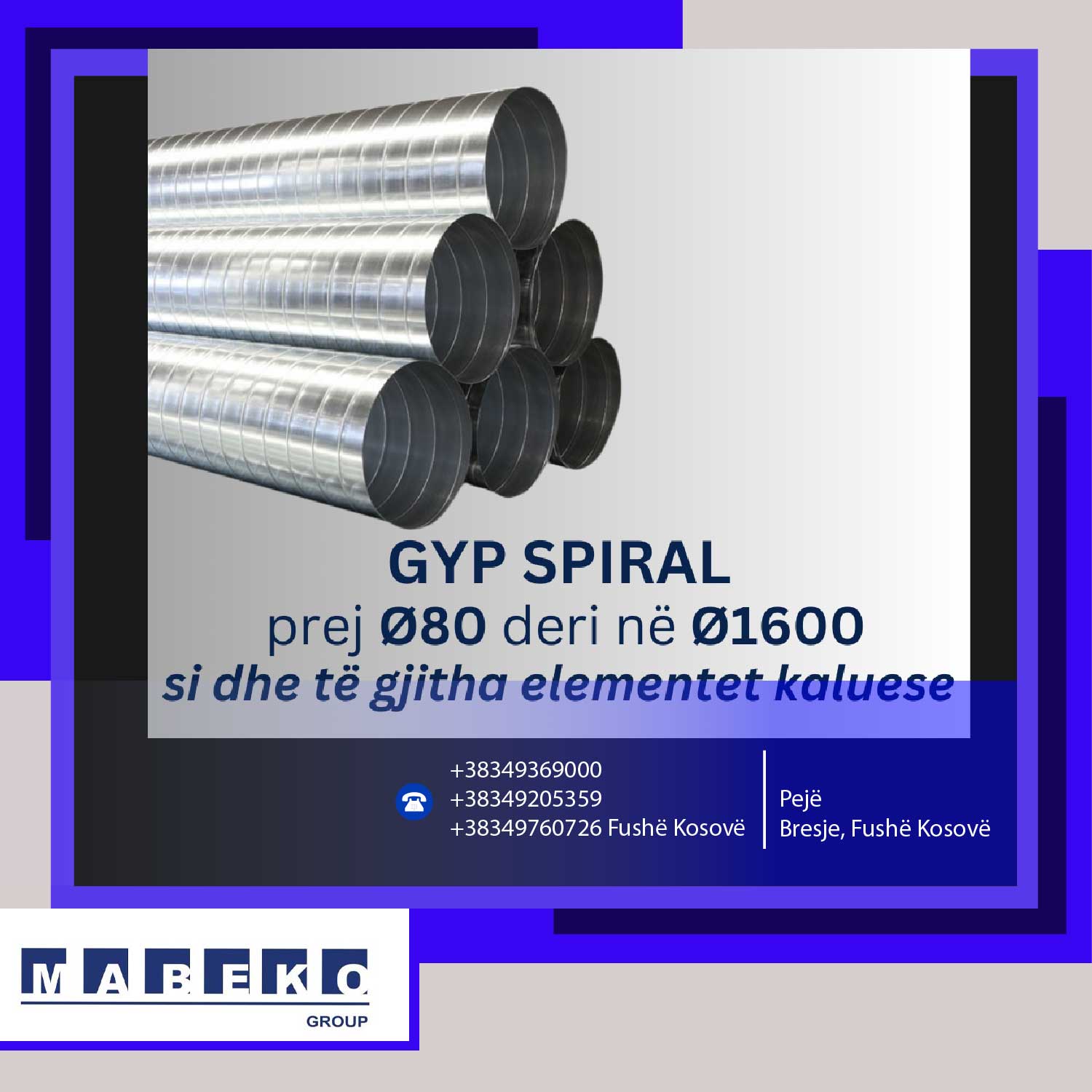 Mabeko Group SH.P.K. është ndër prodhuesit më të mëdhenjë në Kosovë për kanale të Ventilimit (spirale, katërkëndore dhe ovale). Është partner i besueshëm dhe garanton cilësi të lartë të vazhdueshme të prodhimeve të saja duke eksportuar në vendet e rajonit dhe Europë.