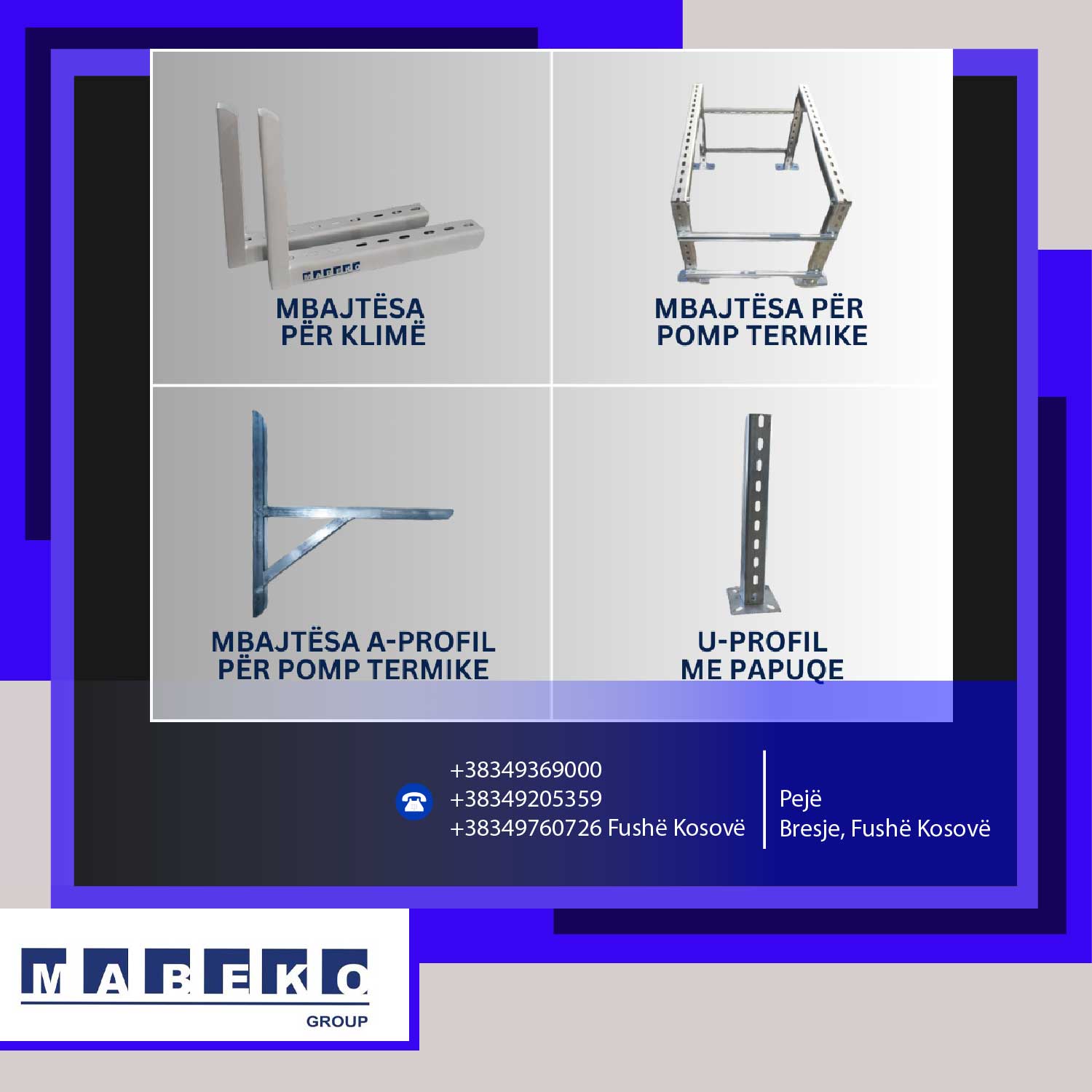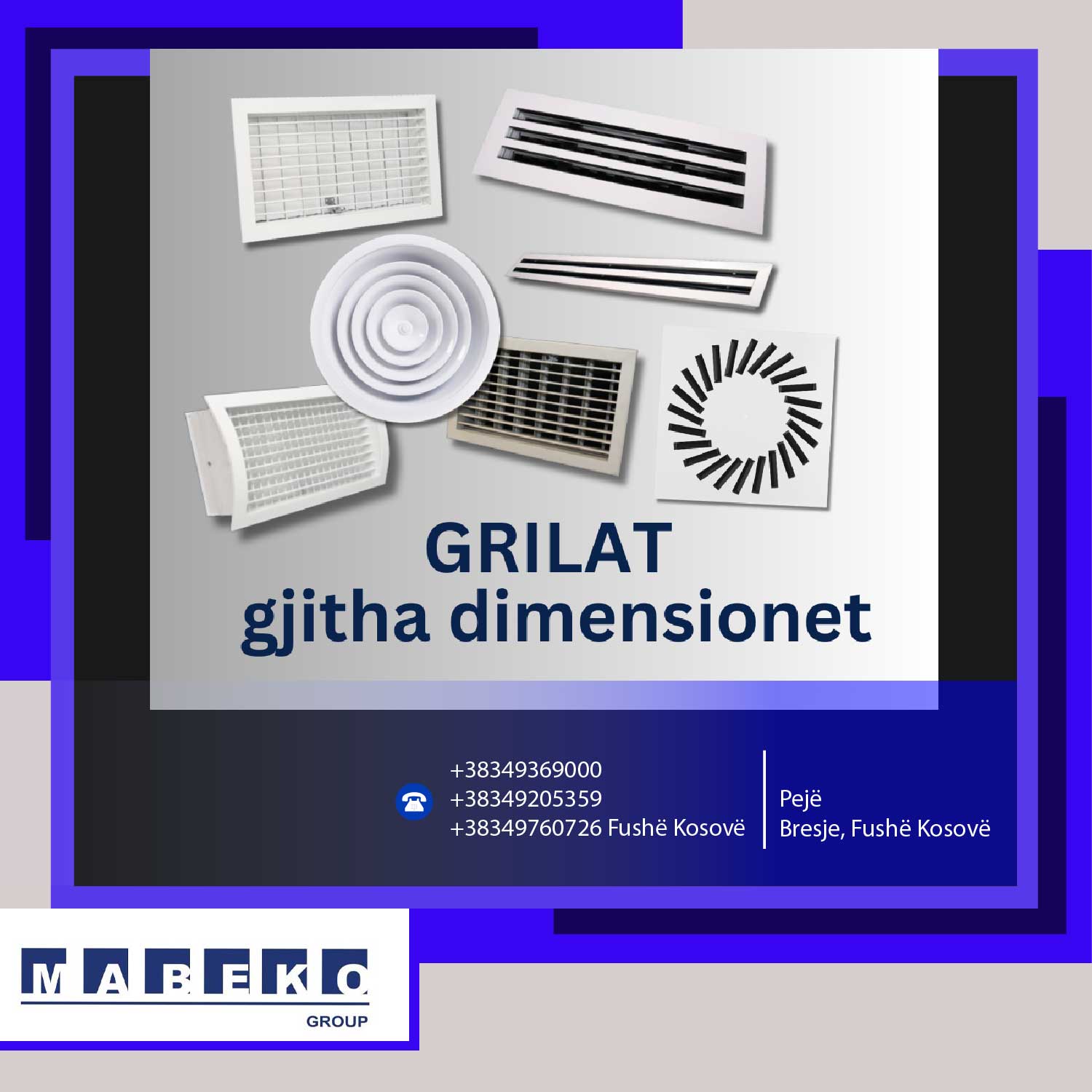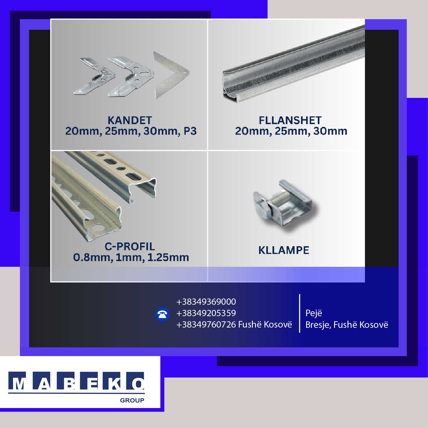Mabeko Group SH.P.K. është ndër prodhuesit më të mëdhenjë në Kosovë për kanale të Ventilimit (spirale, katërkëndore dhe ovale). Është partner i besueshëm dhe garanton cilësi të lartë të vazhdueshme të prodhimeve të saja duke eksportuar në vendet e rajonit dhe Europë.