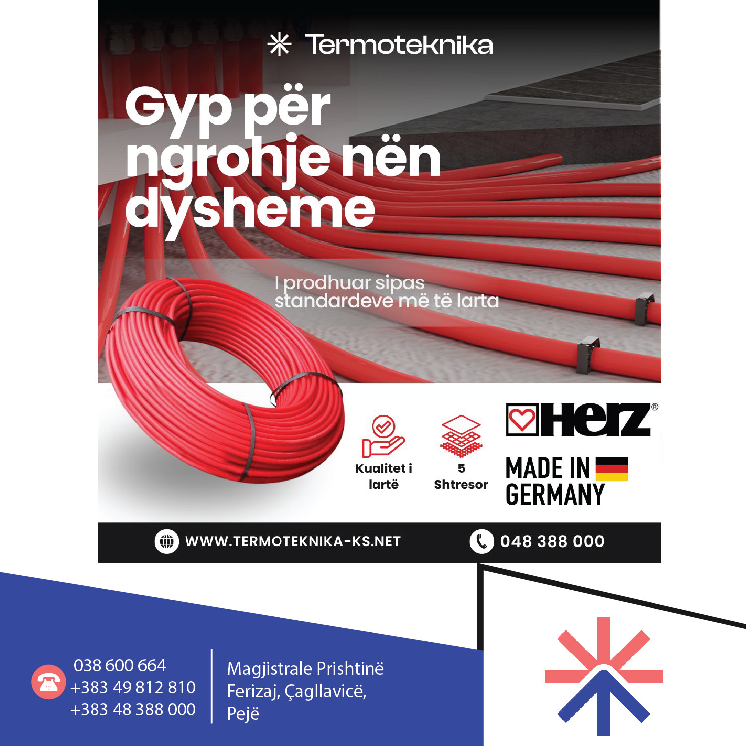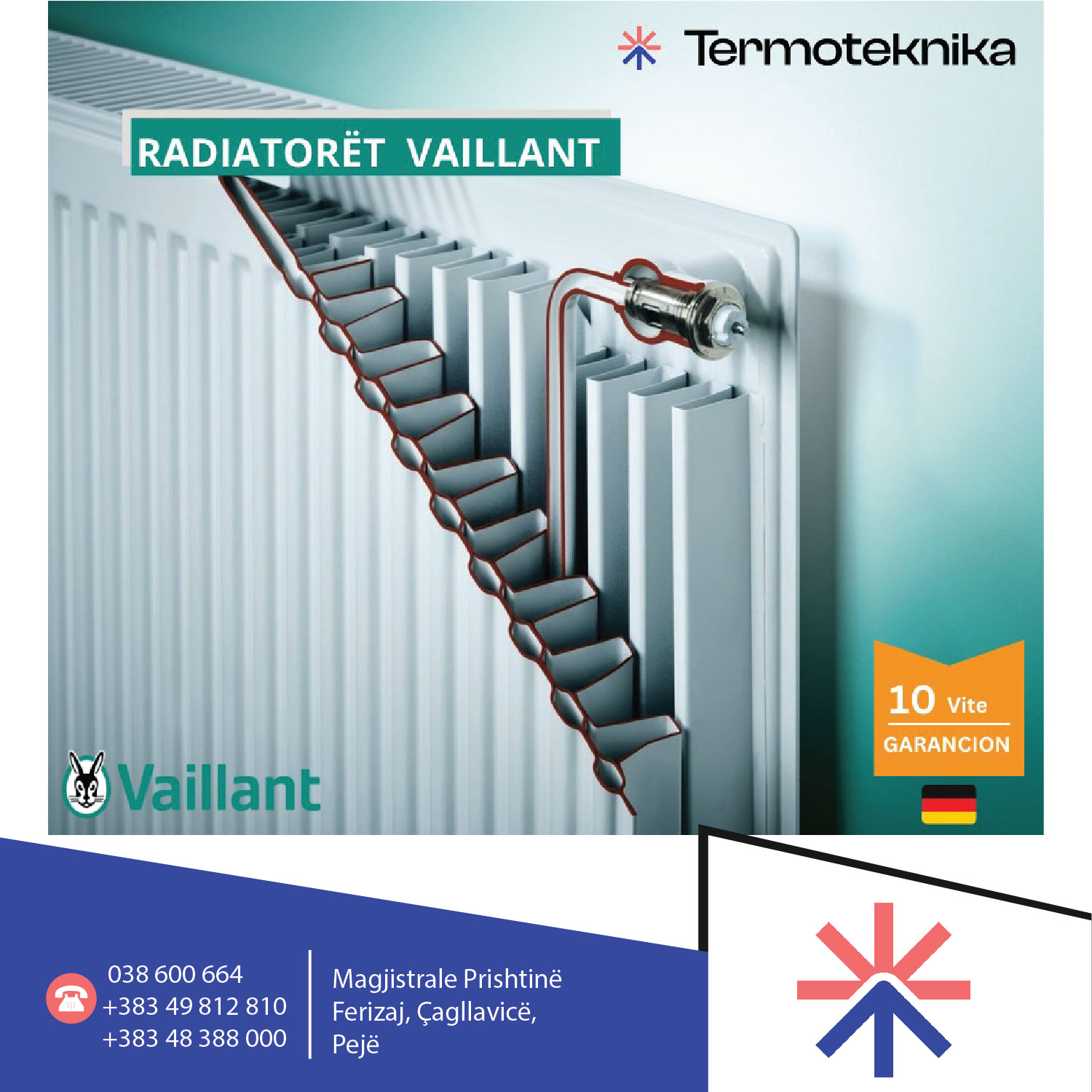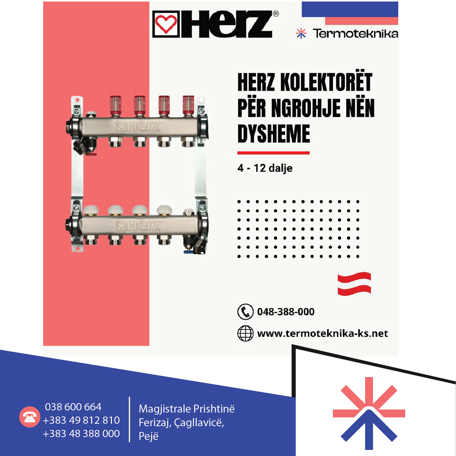 Paisje për ngrohje qëndrore, përfaqësues e brendeve të njohura europiane: Centrometal, Vaillant, Viega, Grundffost, Heimeier, Clivet Home, Herz, ENGO Controls, Sabiana AE Aystria email, etj.